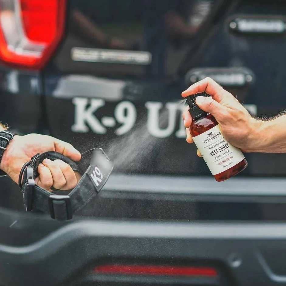 Fox + Hound Vest Spray contains a quick-release deodorizer to cover smells immediately and uses bio-organisms to naturally digest stains and odors to get rid of odors permanently. It is non-staining and will work while you sleep! Many sprays out there only use encapsulants to cover odors. This is only a temporary fix since the stains will continue to emit odors as they decompose; in which, you have to spray the deodorizer again to cover the smell. Some odor-odor masking sprays incorporate zinc metal to help deodorize by killing the bacteria on the vest. Zinc poisoning is very toxic to dogs! Vest Spray is the most natural and effective way to not only eliminate odors but also remove the source of the odor. We even use it on our clothes and shoes when they need a refresher! Available in Escapé and Unscented.